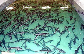 Flowing artesian water, saturated with oxygen, provides real natural living conditions for fry and adult sturgeon fish.