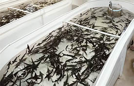 Flowing artesian water, saturated with oxygen, provides real natural living conditions for fry and adult sturgeon fish.